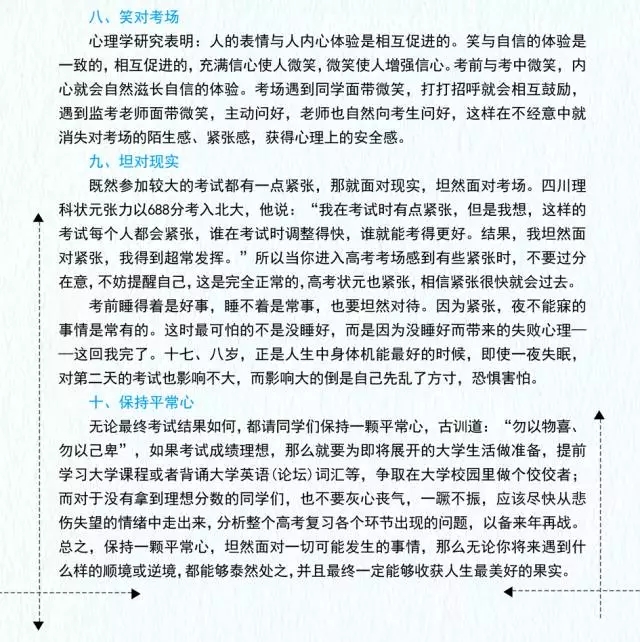 另一方面,家長也要注意避免詢問考生“考得怎么樣”等與考試相關的話題。上午或者下午考試結束后,考生不要劇烈運動,有可能的話洗個澡放松,保持適當休息。